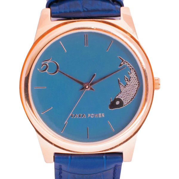This limited-edition Titan watch was specially designed to celebrate the successful conservation of the endangered Mahseer fish. The watch dial features a beautifully embossed Mahseer fish and the number 50, symbolizing the 50-year journey of conservation efforts. Created for Tata Power employees and customers, this timepiece reflects their commitment to environmental sustainability and wildlife preservation. The elegant blue dial and strap further enhance its exclusivity and significance.