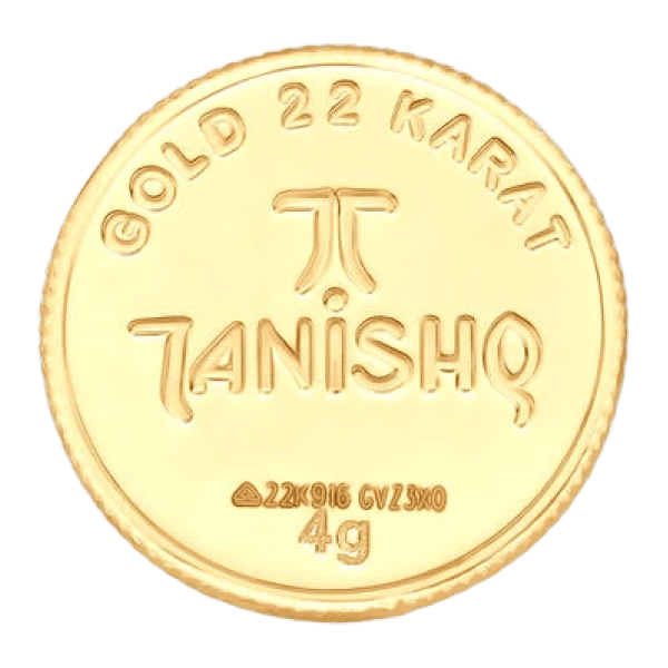 4 gram 22 Karat Gold Coin with Lakshmi Motifs Lakshmi is the Goddess of wealth and prosperity. This 22 Karat yellow gold coin features eight avatars of Goddess Lakshmi and weighs 4 grams.